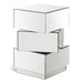 Bring home this Haven coffee table to add a distinctly modern look to your living room or den. This eye-grabbing table from Meridian Furniture features a triple-stacked platform design in a square shape for a geometric look that's more like a piece of fine sculpture than the true utilitarian item it truly is. The surfaces of the table are mirrored, adding a light, airy touch to your space and giving it a beautiful aesthetic in contemporary decor.