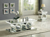 Make this Joceyln end table the center of attention in your living room. This handsome table features a bold design with a geometric footprint that's sleek, chic, and modern. The surface areas of the table are covered in mirrored accents and crystal acrylics, adding depth and dimension to your room while upping the piece's wow factor. The large surface area gives you room for displaying books or other collectibles. Pair it with other items in the Jocelyn collection for a coordinated, modish finish.