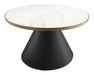 Brimming with refinement, this eye-catching design shows off an elevated white marble top elegantly bordered and anchored to a conical base. The Richard collection is sure to enhance any space its placed. As this is a handmade product, slight variations are to be expected and may result in small gaps between the marble and frame.