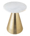 Marble perched upon a conical base, the Tempo cocktail table is brimming with refinement. Finished in glossy, this table will add glamorous style to any space. Combine with the Tempo side table for a standout set. As this is a handmade product, slight variations are to be expected and may result in small gaps between the marble and frame.