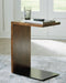 Sleek form, superior function. The C-shaped design of this accent table lends a clean-lined, contemporary feel while providing handy versatility. The table slides over an ottoman or cushion, providing an instant surface for movie night snacks and beverages. Sofa-side convenience has never been so stylish.