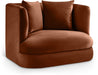 The Alder velvet upholstered accent chair is an invitation to relax. Its rounded silhouette and soft velvet upholstery create a cozy and inviting space, perfect for curling up with a good book or simply unwinding after a long day. Whether you're entertaining guests or enjoying a quiet moment alone, it is the ideal place to unwind.
