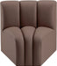 Unleash modern opulence with the Arc Vegan Leather Curved Corner. Crafted for the modern connoisseur, this chair injects an air of refined luxury into any space. Its sleek silhouette, upholstered in supple vegan leather, exudes timeless sophistication while the deep channel tufting adds textural intrigue, further elevating the chair's visual appeal. The modular design makes it a versatile chameleon, effortlessly adapting to your evolving needs and preferences. Whether you envision it gracing a chic living room corner, basking in the glow of a bedroom window, or adding a touch of drama to a home office, the Arc seamlessly complements your unique interior aesthetic.