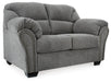 Why sacrifice comfort for style (or style for comfort) when you can have the best of both in this loveseat in pewter gray. Elements include a chic divided-back design and pillow top wrapped armrests that make nodding off all too easy. Calling attention to the elegantly flared armrests—black nickel-tone nailhead trim for a punch of cool character.