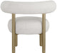 Get comfortable in this Bordeaux boucle fabric accent chair. This curvy chair features a back that hugs and provides support to your back while you hang out and get cozy. The soft boucle fabric is soft to the touch, providing a welcoming spot for you to relax and unwind. A brushed brass finish on the iron legs gives this chair a touch of modish charm.