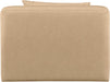 Elevate your space with the luxurious Cube Vegan Leather Armless Chair. This armless chair exudes modern elegance, charm, and comfort making it a perfect addition to any contemporary living space. Its clean lines and cube shape are reminiscent of minimalist design, while the plush tan vegan leather upholstery adds a touch of luxury and sophistication. The chair's versatile construction and geometric aesthetic seamlessly integrate into various design styles, from sleek living rooms to chic home offices, embodying the essence of modern design and creating a sense of order and tranquility in your space.