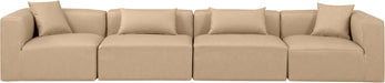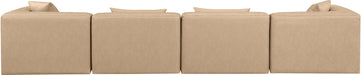 Elevate your space with the luxurious Cube Vegan Leather Modular Sofa. This modular sofa exudes modern elegance, charm, and comfort making it a perfect addition to any contemporary living space. Its clean lines and cube shape are reminiscent of minimalist design, while the plush tan vegan leather upholstery adds a touch of luxury and sophistication. The chair's versatile construction and geometric aesthetic seamlessly integrate into various design styles, from sleek living rooms to chic home offices, embodying the essence of modern design and creating a sense of order and tranquility in your space.