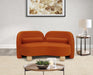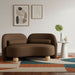 A cloud-like oasis of comfort, the Daphne velvet loveseat is a modern sensation. Its plush upholstery invites you to sink in and relax, while the curved design offers both support and opulence. The loveseat's unique silhouette is complemented by a choice of black or natural wooden legs, allowing you to customize it to your personal taste. Whether you're looking for a stylish accent piece or a comfortable spot to unwind, the Daphne loveseat is the perfect choice.