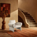 Kick back in this Fleurette velvet accent chair to get comfortable and cozy after a hard day at the office. Soft velvet upholstery covers every square inch of this lovely chair, making it the perfect spot for curling up with a bestseller or just relaxing. An iron frame and foam padding add to the chair's long-lived beauty and performance, and the curved arms make for an uber contemporary look. The chair's design allow lots of clearance below for cleaning.