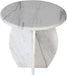 Lend your room a refined, elegant look with this Formentera end table. This table oozes sophistication from its wavy marble with light grey veining construction to its uniquely shaped base. The perfect end table for adding a modern touch to your space, this piece steals the show, doubling as part art, part utilitarian furniture must-have. And it's crafted by hand with genuine marble, so you can trust it to last for years if not generations of use.