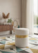 Put the finishing touch on your seating area with this Hailey Ottoman/Stool. This handsome stool features an intersecting strip of stainless steel with a chic finish, giving it a staggered look. The ottoman is covered in velvet upholstery for an upscale feel and soft touch against your skin. Place this fun and elegant stool in the living room for a comfortable foot prop or in the bedroom for an out-of-the-way seat.