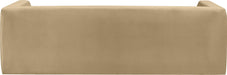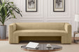Spice up your living room or den with this Henson velvet sofa. This handsome chair has a boxy design that suits any contemporary room with ease. It's covered in rich velvet that's luxuriously soft to the touch and against the body, making it everyone's favorite seat. The solid wood frame of this modern sofa adds durability, resilience, and long-lasting enjoyment to this sofa, making it look right at home in your up-to-the-minute space.