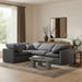 Unwind in tranquil elegance with the Indulge Velvet Sectional. Imagine sinking into the plush embrace of this lush sectional, crafted from rich, textured velvet that feels soft and inviting against your skin. Overstuffed down feather cushions cradle you in cloud-like comfort, while the solid wood frame provides unwavering support. This modular masterpiece isn't just furniture - it's a blank canvas for creating your dream living space. Arrange the versatile pieces in countless configurations, from a sprawling entertainment zone for movie nights to intimate reading nooks for quiet moments. Indulge in the ultimate comfort, endless possibilities, and timeless elegance.