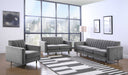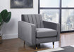 Cozy up to the comfort of this Lola Chair. Its rich color adds a jolt of excitement and fun to your space, shaking things up in a neutral-colored room. The back is channel tufted for a beautiful, contemporary look and to help the back cushioning maintain its welcoming loft. Elegant slant-tipped legs with tips lend this chair a charmingly modern finish and provide a sturdy foundation. Add it on its own, or add the matching sofa and loveseat for a coordinated look.