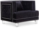 The Lucas Collection by Meridian Furniture. Features beautifully tufted velvet upholstery with a custom nail head design and clear acrylic legs. This collection is guaranteed to be the highlight of any home.