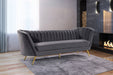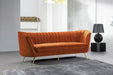 Lean back and lounge in luxurious style on this stunning Margo velvet sofa by Meridian Furniture. This contemporary sofa features plush velvet upholstery that is both classy and sumptuous against your skin, a single seat cushion and rounded arms that curve into a low, rounded back, creating a perfect, modern piece for your home. stainless steel legs support this sofa and provide stunning contrast to the sofa's plush, fabric.
