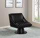 Revitalize your space with the Millwin vegan leather swivel accent chair, featuring a sleek vegan leather upholstery that marries modern elegance with eco-friendly craftsmanship in a unique art deco manner. This stylish chair offers smooth 360-degree swivel functionality on a wood frame and base, making it a versatile choice. Its contemporary design and plush cushioning provide both comfort and visual appeal, adding a sophisticated touch to any setting.