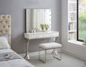 Pair this Monroe Leather Ottoman/Stool with the matching desk in the same collection or use it on its own as a beautiful standalone accent in any room. A stainless steel base with a chic finish gives the ottoman a beautifully elegant and upscale look. The softly padded top brings luxury to sitting, and it's upholstered in soft white faux leather for a refined presentation wherever you choose to use it.