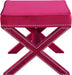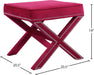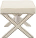 You'll be sitting pretty on this Nixon velvet ottoman/bench. This beautiful piece has a stunning look with its velvet upholstery and nail head trim that gives your room a decidedly contemporary vibe. The X-shaped legs are sturdy and stout, making it a beautifully durable addition to your space. The ottoman's large top accommodates your feet while you relax and unwind with a good book, or pull it out on game night for an extra seat.