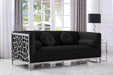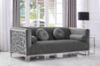 Catch the eyes of all who step foot in your home with this bold Opal velvet sofa. Its stainless steel patterned design creates a contemporary flair against its plush, velvet upholstery, creating a home accent piece that is both comfy and stylish. Its roomy design offers ample room to kick back and relax after a long day, while its stocky shape adds a daring touch to your decor.