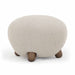 Softly sculptural and irresistibly playful, the Pucker Ottoman brings texture and charm with its rounded silhouette and chunky, knubby wood feet. Upholstered in a tightly woven, contract-grade boucle fabric, it's equal parts durable and whimsical, perfect as a footrest, accent seat, or simply a conversation-starting design piece.