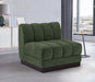The Quinn Armless Chair is a stunning piece crafted in a rich and luxurious chenille fabric. Its awe-inspiring design and exceptional quality make it a perfect addition to any space, whether it's a living room, bedroom, or office. The chair's plush cushioning and sturdy frame provide both comfort and durability, ensuring that it will be a favorite for years to come. Whether you're looking for a statement piece or simply a comfortable seating option, the Quinn armless chair is an excellent choice.