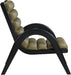 Elevate your surroundings with the Randal vegan leather upholstered accent chair, featuring rich vegan leather and a black finish wood frame. Designed with deep channel tufting, this Art Deco-inspired piece offers both style and comfort, making it a standout addition to any modern or classic interior. The sleek combination of luxe upholstery and warm wood tones creates a sophisticated contrast, perfect for adding a touch of elegance to your living room, office, or lounge area.