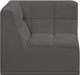 Bolster a contemporary vibe in your living room with this Relax velvet corner chair. Soft black velvet upholstery offers delicate comfort, making this chair cozy for anyone who sits in it. Biscuit tufting gives this chair texture and a modern style, adding extra comfort and elegance to your living space. It s modular design allows you to create infinite configurations, making it a versatile piece to add to your home. A latch underneath the chair makes it easy to attach to other pieces.