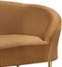 Get comfy while remaining chic in this elegant Ritz saddle velvet chair. Plush saddle-colored upholstery provides a soft texture that is pleasing to the senses, while its curved design offers a contemporary touch to your home furnishing. Gold metal legs complement the chair's sophisticated saddle color, creating a gallant piece anyone would be proud to display in their home.