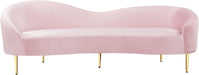 Get comfy while remaining chic in this elegant Ritz velvet sofa. Plush-colored upholstery provides a soft texture that is pleasing to the senses, while its curved design offers a contemporary touch to your home furnishing. metal legs complement the sofa's sophisticated color, creating a gallant piece anyone would be proud to display in their home.