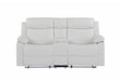 The U6026 Console Reclining Loveseat offers both luxury and convenience. Finished in blanche white with manual reclining seats, it includes a center console with storage and cupholders, ensuring your essentials are always close at hand. Built-in LED lighting adds a stylish glow, making this loveseat a polished addition to your home.