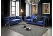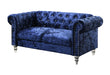 The U9550 Loveseat brings charm and relaxation to your room. With plush tufted padding and deeply padded armrests, this loveseat offers cozy comfort. The blue velvet fabric allows for easy coordination with any decor, while the bun style acrylic feet and nail head trim enhance its inviting appeal.