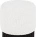 Indulge in the luxurious texture of the Veranda Boucle Fabric Ottoman/Stool. It boasts a rich boucle fabric that is paired with an elegant and sturdy solid wood base, featuring a black finish that highlights the beautiful wood grain patterns. This unique combination of materials creates a perfect blend of style and durability, making it an ideal addition to any modern or traditional interior design.