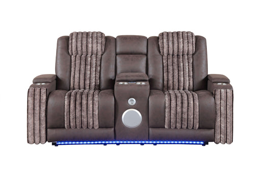 Global Furniture USAThe U8000 Brown Console Reclining Loveseat pairs cutting-edge design with plush comfort. Finished in brown upholstery with soft corduroy faux fur a...