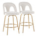 Ava - Upholstered Fixed-Height Counter Stool (Set of 2) - Gold Metal, Snow White Fabric