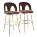 Ava - Upholstered Fixed-Height Barstool (Set of 2) - Gold Metal, Espresso Velvet