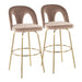 Ava - Upholstered Fixed-Height Barstool (Set of 2) - Gold Metal, Taupe Velvet