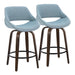 The wide and welcoming seat of the LumiSource Fabrico Counter Stool beckons one to sit and relax. A curved back and contoured upholstered swivel seat is accented by flared bent wood legs that add to the stylish yet comfortable design. Available in a variety of upholstery colors, choose the one that suits your space best.