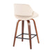 The wide and welcoming seat of the LumiSource Fabrico Counter Stool beckons one to sit and relax. A curved back and contoured upholstered seat is accented by flared walnut wood swivel legs that add to the stylish yet comfortable design. Available in a variety of upholstery colors, choose the one that suits your space best.