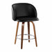 Fran - 25" Fixed-Height Counter Stool (Set of 2) - Walnut Wood, Black Faux Leather, Chrome Metal