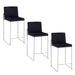 Fuji - 26" High Back Barstool (Set of 3) - Stainless Steel And Black Faux Leather