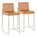 Fuji - 26" High Back Barstool (Set of 2) - Stainless Steel And Camel Faux Leather
