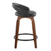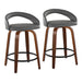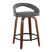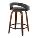 Grotto - 24" Upholstered Fixed-Height Counter Stool (Set of 2) - Walnut Wood, Gray Faux Leather, Black Metal
