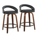 Grotto - 24" Upholstered Fixed-Height Counter Stool (Set of 2) - Walnut Wood, Black Faux Leather, Black Metal