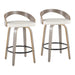 Grotto - Fixed-Height Counter Stool (Set of 2) - Light Gray Wood, White Faux Leather, Black Metal