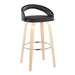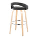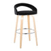 Grotto - Upholstered Fixed-Height Barstool (Set of 2) - Natural Wood, Black Faux Leather, Chrome Metal