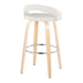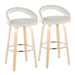 Grotto - Upholstered Fixed-Height Barstool (Set of 2) - Natural Wood, White Faux Leather, Chrome Metal