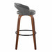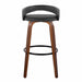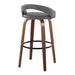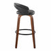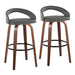 Grotto - Upholstered Fixed-Height Barstool (Set of 2) - Walnut Wood, Gray Faux Leather, Black Metal