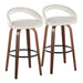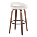 Grotto - Upholstered Fixed-Height Barstool (Set of 2) - Walnut Wood, White Faux Leather, Black Metal