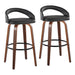 Grotto - Upholstered Fixed-Height Barstool (Set of 2) - Walnut Wood, Black Faux Leather, Black Metal